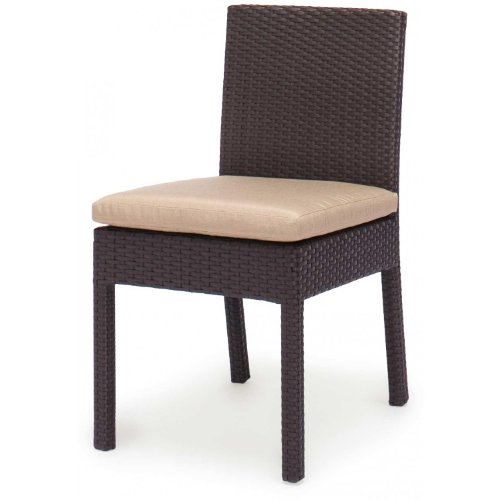 Caluco Maxime Wicker Dining Side Chair. 607-6. Patio Dining Chairs. This Caluco Maxime Dining Side Chair in Dark Java is crafted of polyethylene hand-woven resin wicker with an aluminum frame. The Caluco Maxime Collection offers bold geometric lines and plush deep seating, the appeal of fine rattan furniture without the upkeep and weather-repellant polyester strands that are hand-woven over a premium quality tubular aluminum frame. Highly resistant to fading, cracking or mildew. Optional high performance Sunbrella fabric cushions are available in a variety of colors. Nylon gliders are included. and then update cheapest prices immediately. Limited time Only!